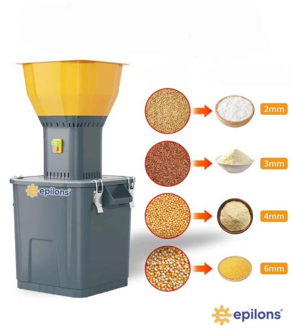Epilons 55L Profesyonel Tahıl Yem Öğütücü – 9 Paslanmaz Elek Hediyeli